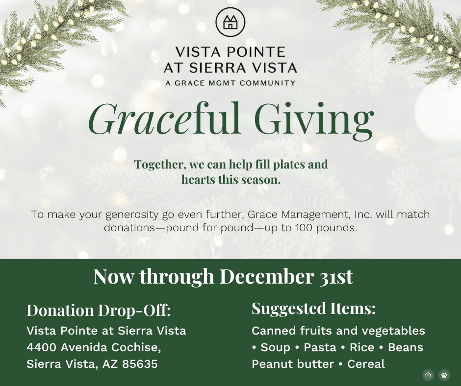 To make your generosity go even further, Grace Management, Inc. will match donations—pound for pound—up to 100 lbs! We can help fill plates and hearts this season through Graceful Giving.